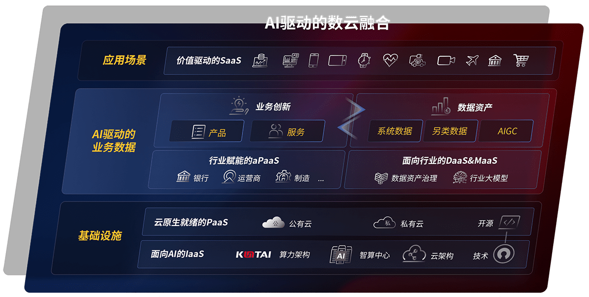 以尊龙旗舰厅鲲泰全国产化计算产品帮助金融行业客户构筑数字底座;以丰富的AI和数云产品及方案,,保障数据安全,,,,挖掘数据价值,,提升服务品质
